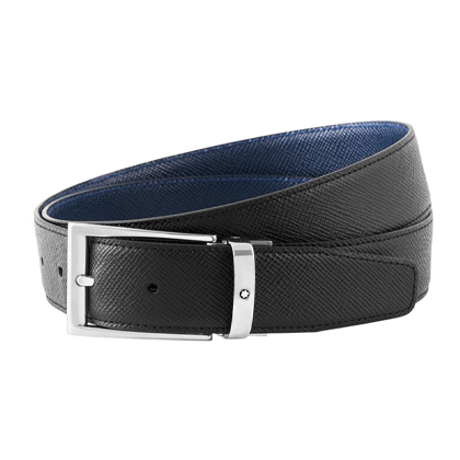 Двусторонний ремень из кожи черного и синего цвета 35 мм от магазина премиальных ручек Premium Pens в Севастополе.